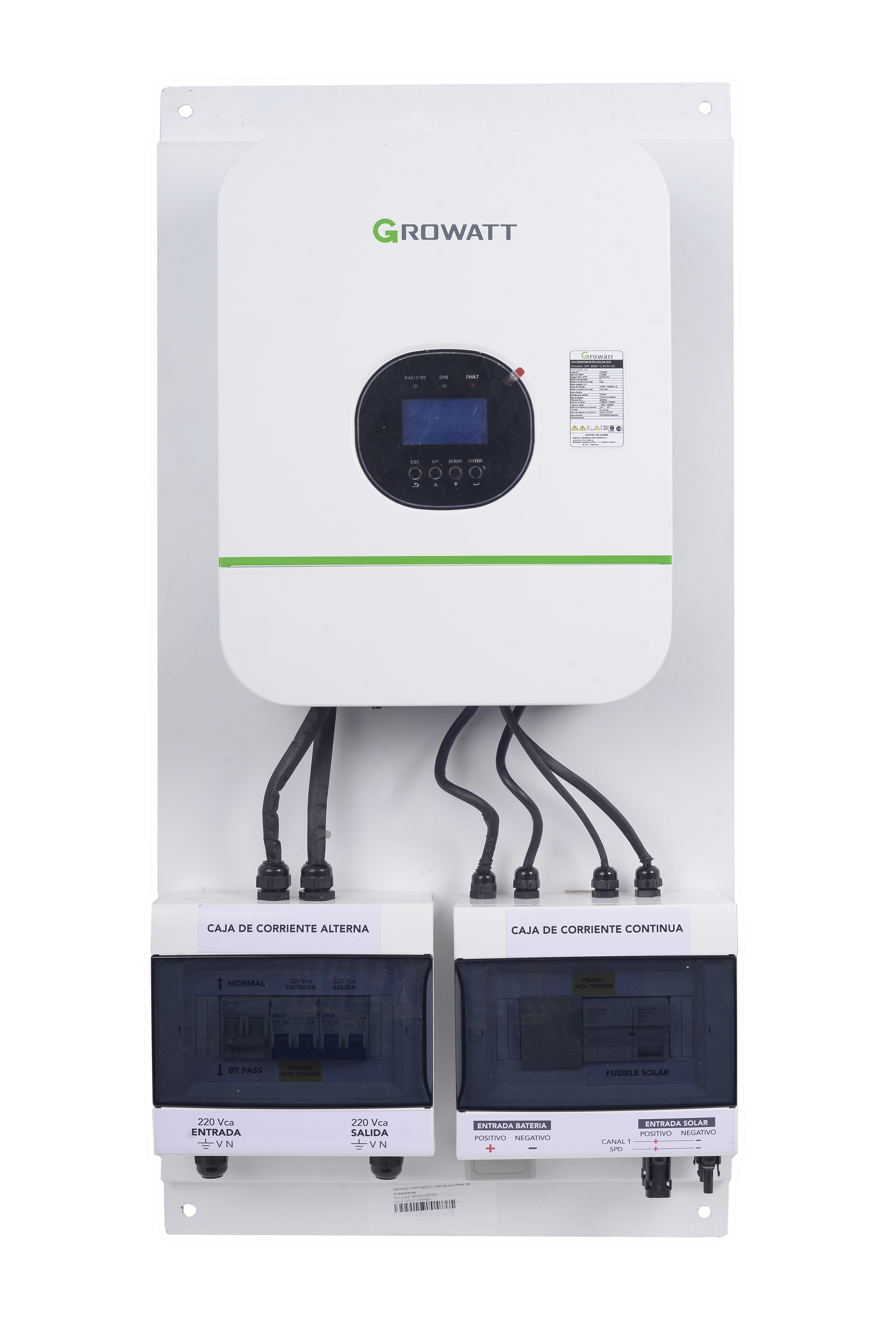 Central Panel con Inversor Growatt SPF 5000TL HVM 48 + Protecciones CC y CA (interruptor termomagnético y llave bypass). Apto WiFi (ID 5080)