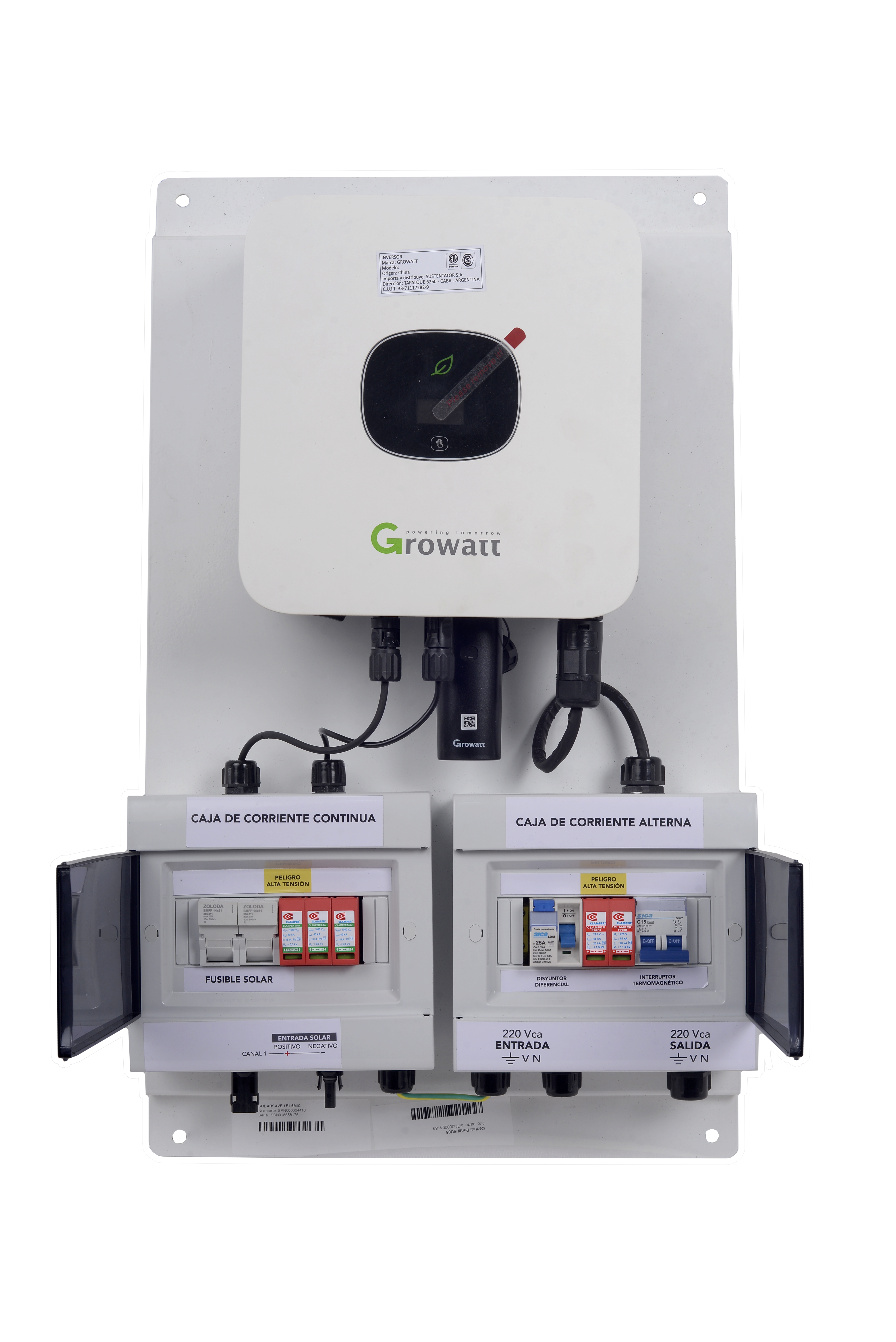 Central Panel con inversor Ongrid Growatt 2000W 220V CA (monofásico) Incl. Protecciones CC, CA y atmosféricas.